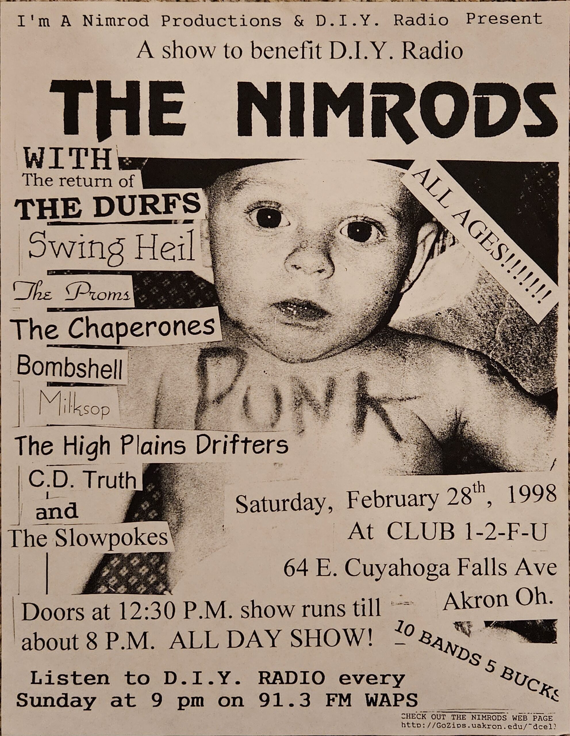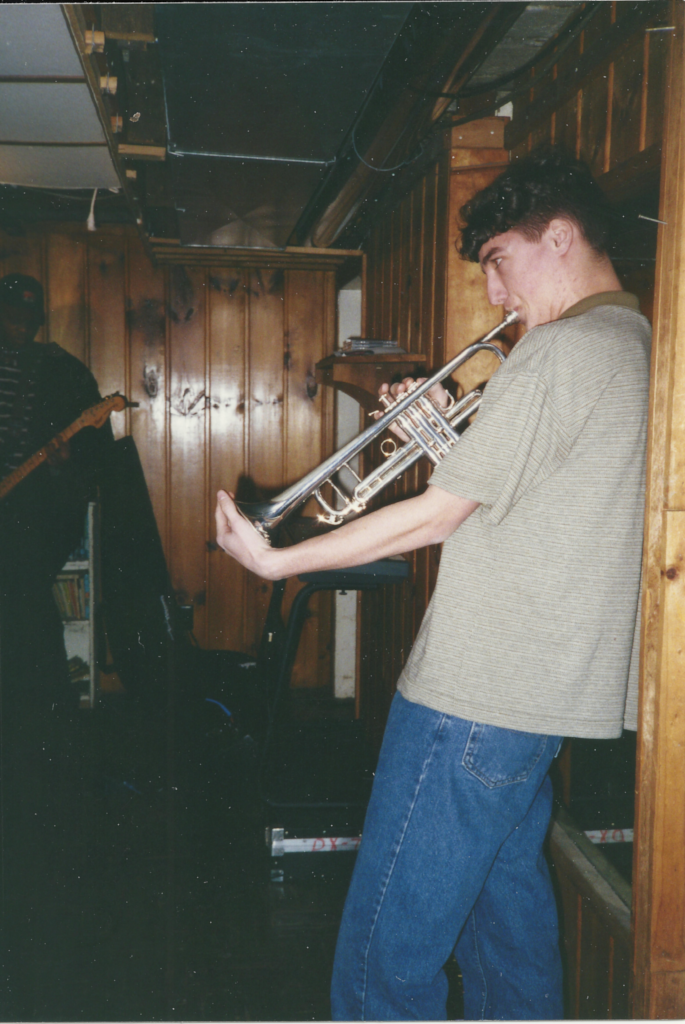This footage is from From Peabody’s Down Under in the Flats in Cleveland in 1998. It was the largest show we ever played and had about a 1000 people. It was the record release party for a local band that was really good called Monster Island. To draw people we put a line-up together with 6-7 bands. Regrettably, I don’t have a flier from the show, and I only remember the three largest bands: Monster Island, Saxatromba, and Swing Heil. At the time, we estimated that our band drew about 300 of those people. I’m sorry, I have to call these “Home Videos” because when they’re made with an old camcorder, that’s a home video! 😂