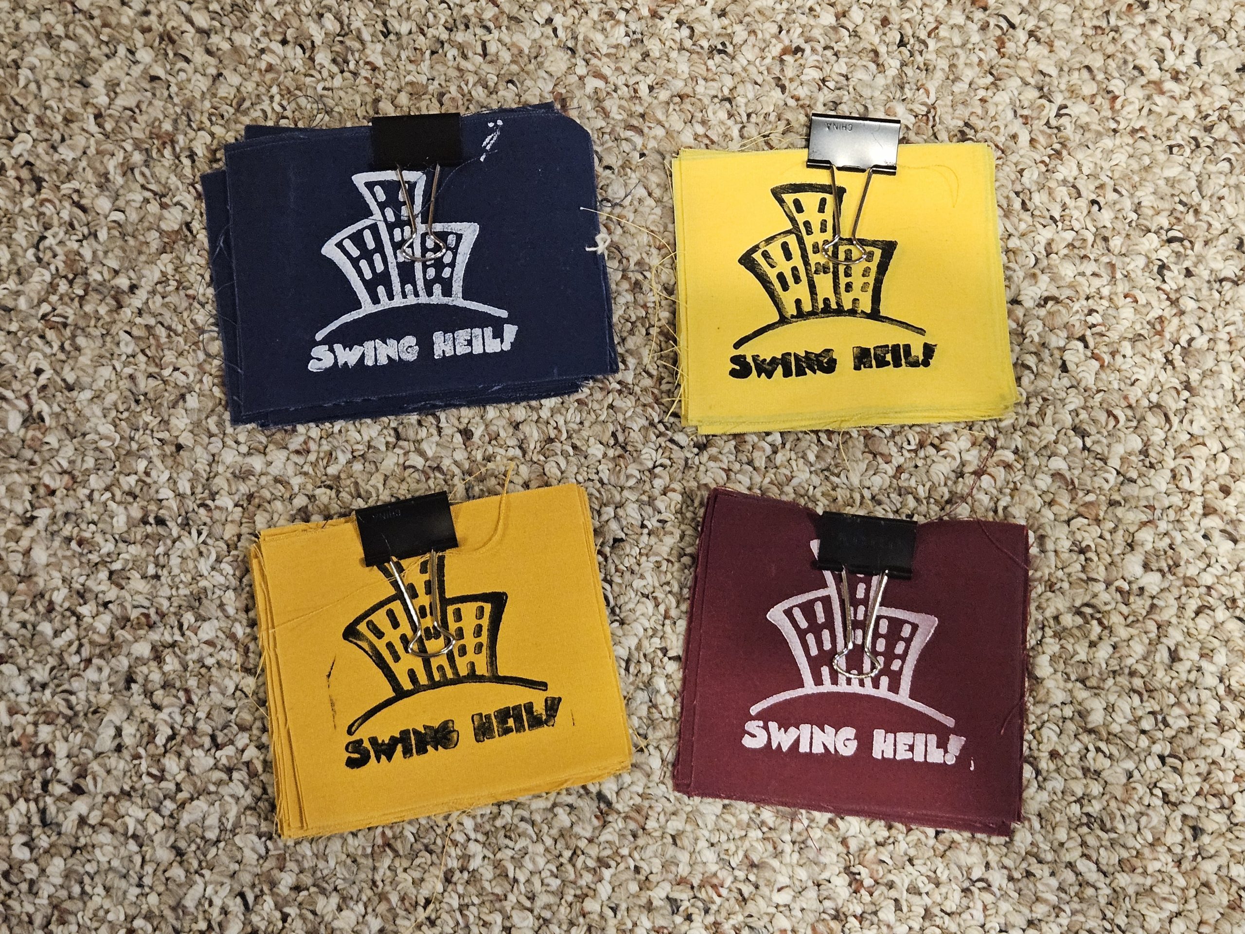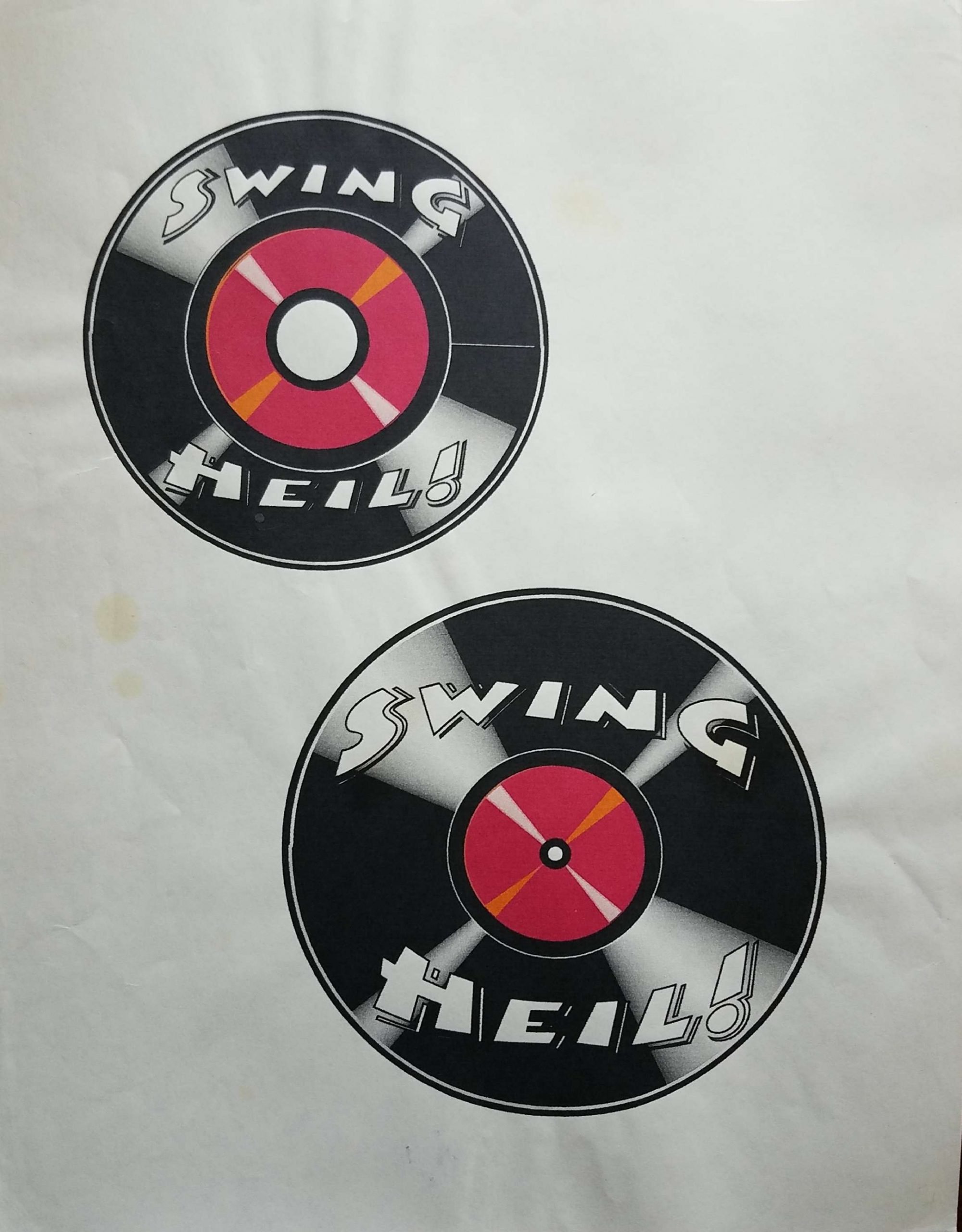 Looking through all of this old stuff really brought back memories. All of the screen printing we used to do for t-shirts, patches, and even the folders we used to track stuff. The blue binder is where we kept our receipts for everything, contact information for promoters and club owners, etc. It was the CRM of Swing Heil 🤣 In the sheet of Swing Heil records with six of them on the page, you might notice that we actually laid those out on paper with tape and glue. Back then, it wasn’t just a cut and paste. It was kind of cool because there were six different kinds of stickers when we’d make copies of that sheet onto sticker paper. At the time, that was the only way we knew how to make stickers. Not like nowadays, when you just send an image off to some printer!